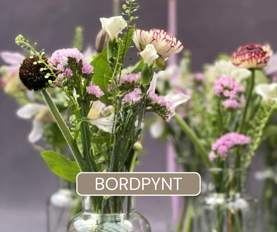 Vi elsker blomster og at designe smukke kreationer - og gør altid meget ud af at have et spændende og anderledes udvalg af varer. Vores sortiment rummer derfor alt fra de høje have buketter, lave luftige, med nøje indkøbt afskåret snit i årstidens udvalg.