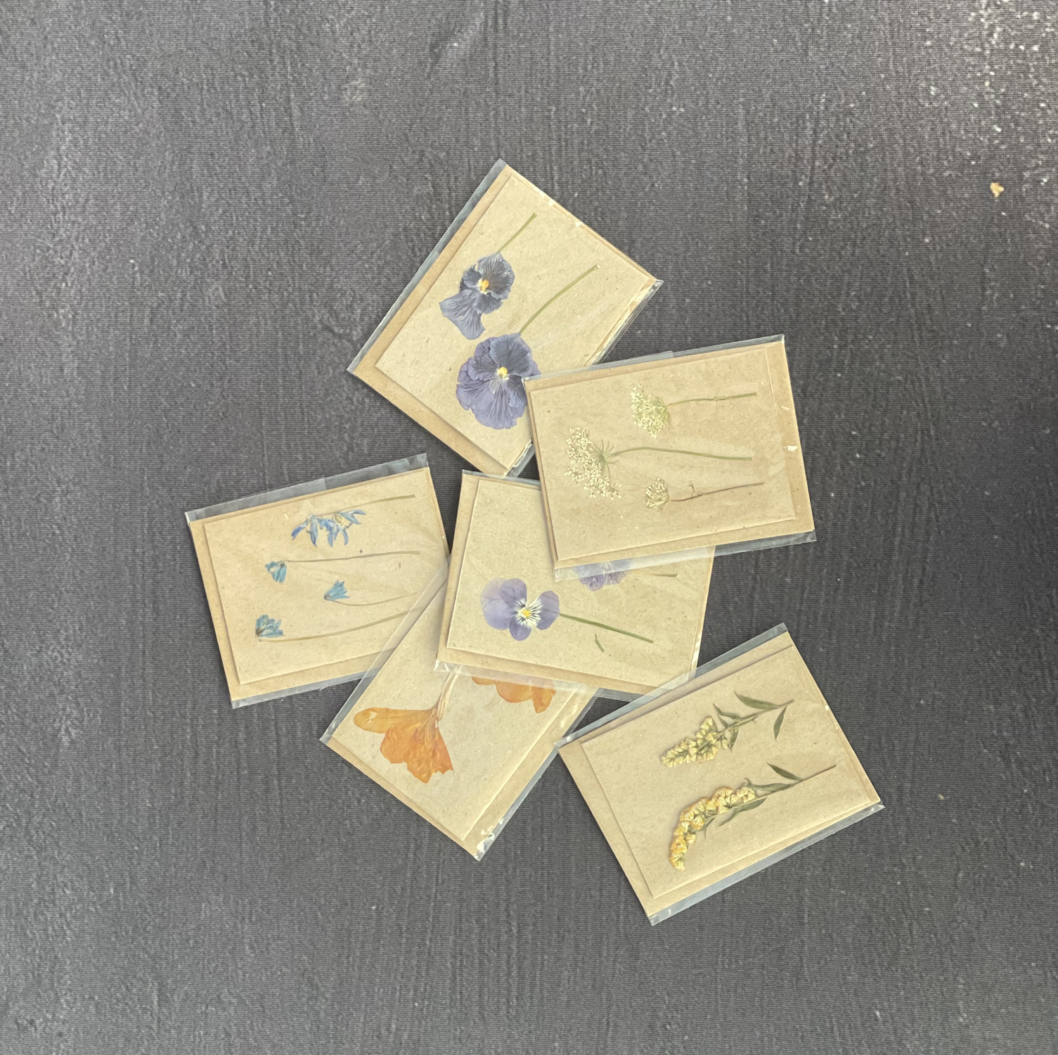 Vores kort er håndlavet. Alle blomster er plukket og presset af Mia som ejer firmaet Eternity Flowers by Mia Andersson.