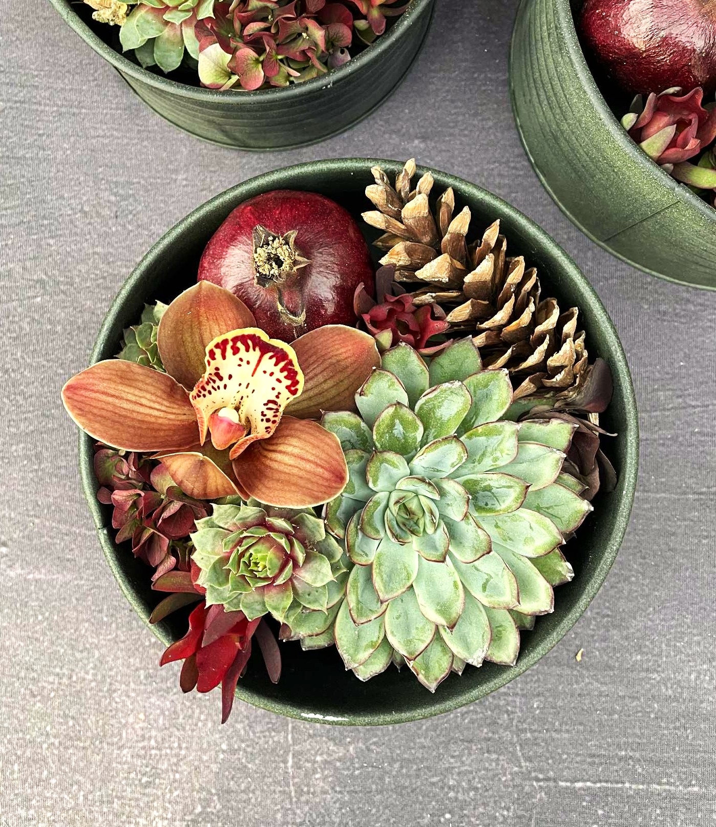 Her har vi designet en hyggelig og stilfuld dekoration, der emmer af jul. Vores Green Edition er bygget op i smukke grønne metalfade fra B GREEN. De indeholder et herligt mix, der i farvekombinationen både komplimenterer og fuldender udtrykket.